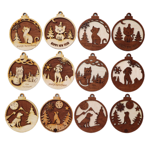 Voeg de feestelijke sfeer toe aan je kerstboom met de houten ornamenten van CoolCuts.
