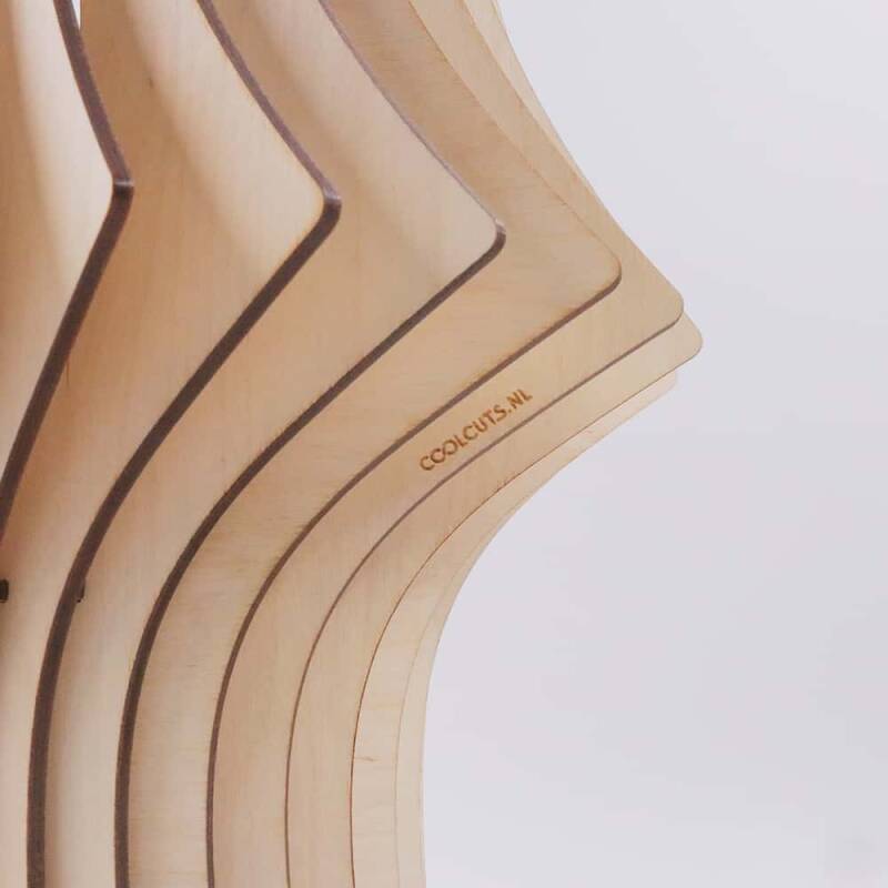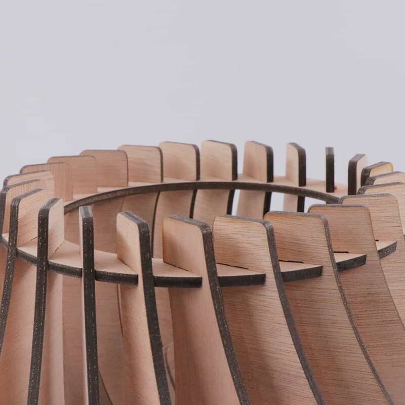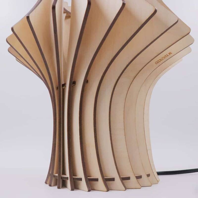 De vloeiende lijnen en open structuur zorgen voor een zachte lichtval en een warme uitstraling. Door het compacte formaat is de lamp ideaal voor kleinere plekken, zonder in te leveren op sfeer en design.